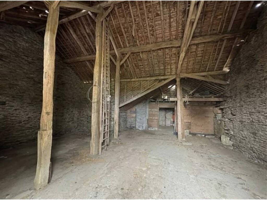 Elle comprend plusieurs pièces sur 2 niveaux : séjour, cuisine, salon, salle de bains, 3 chambres, WC séparé, débarras, ainsi qu’un grenier aménageable, une étable et une grande grange.