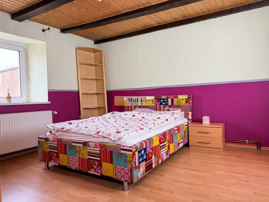 À l'étage : plusieurs chambres, dont une de plus de 20 m². Combles aménagés avec chauffage et fenêtres de toit.
