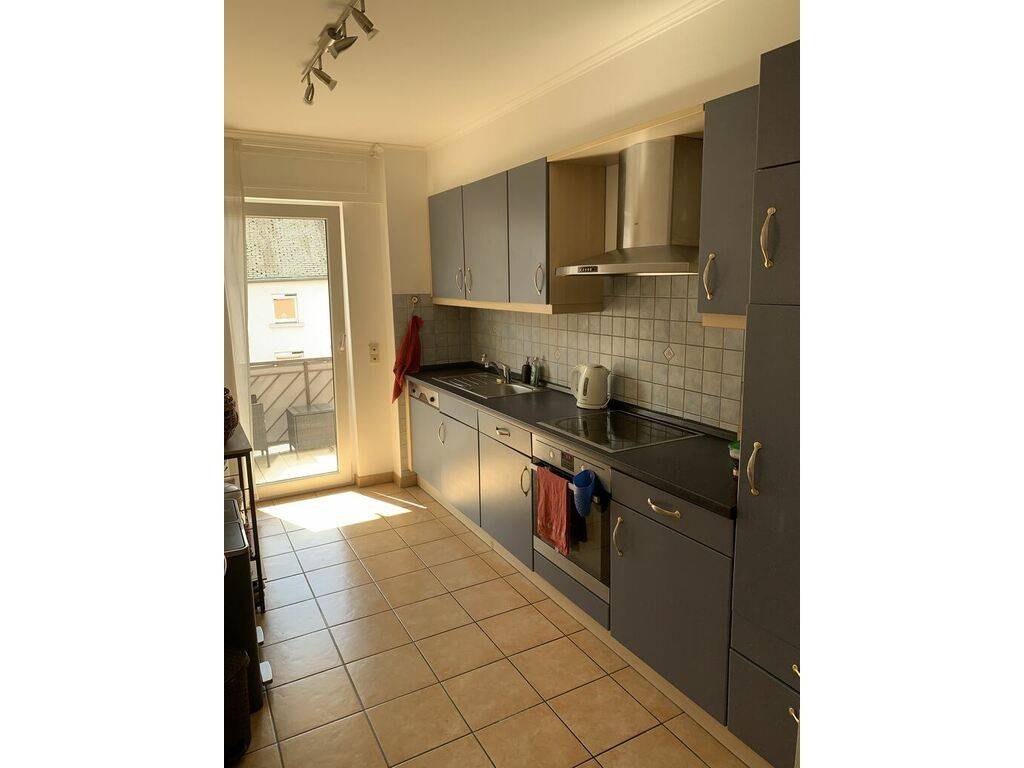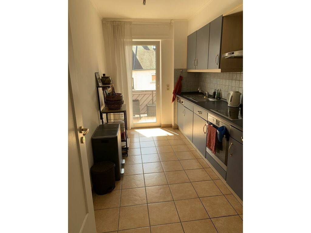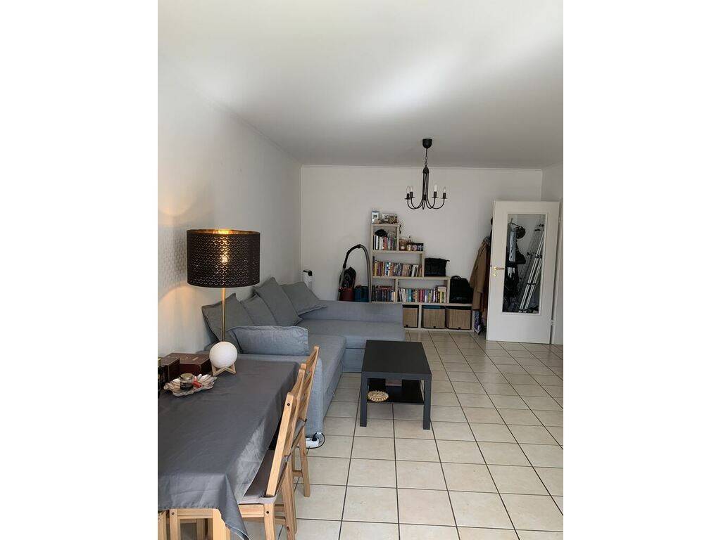 For rent a beautiful apartment of +/-65m2 on the 1st floor with elevator comprising entrance hall, living room with balcony, fully equipped kitchen with balcony, bathroom, separate toilet, separate bedroom, basement, common laundry room and indoor location for the car.