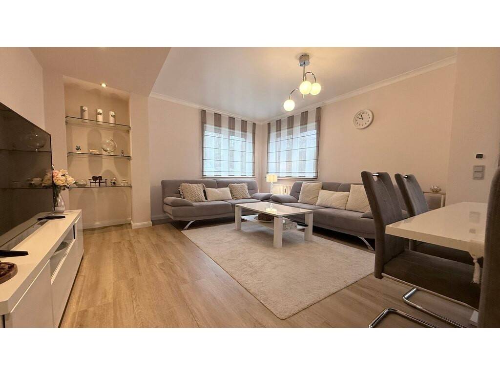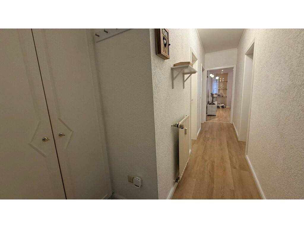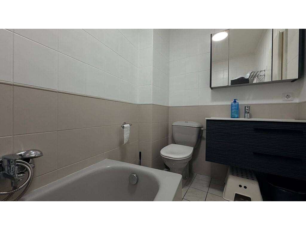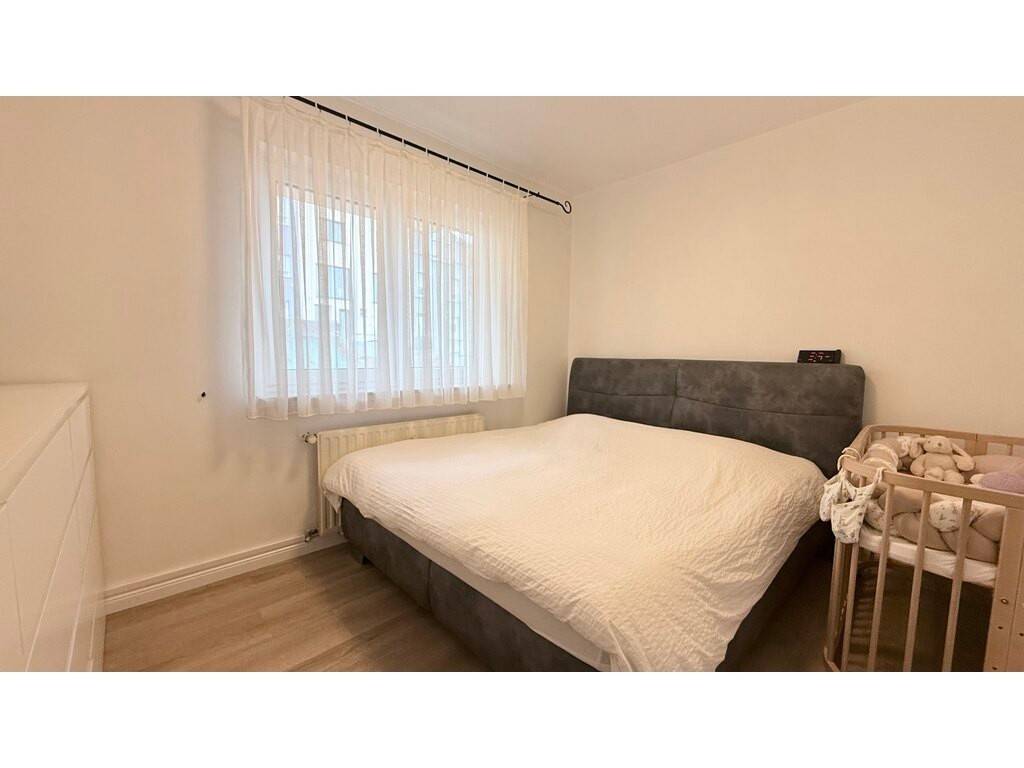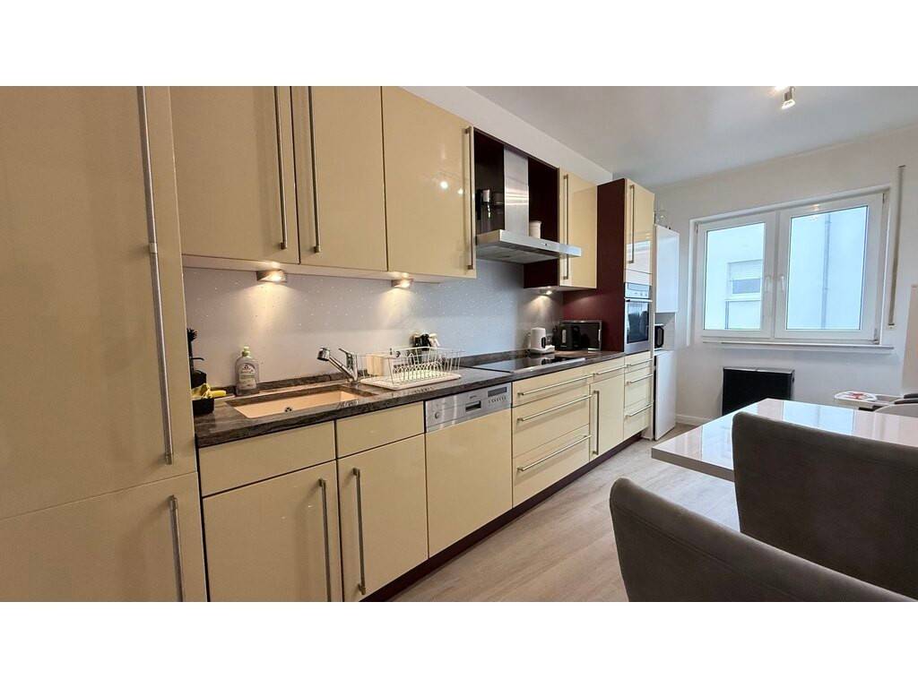 L'appartement se compose comme suit: hall d'entrée avec placard encastré, deux chambres à coucher, une salle de bain avec WC, cuisine entièrement équipée, living avec accès sur balcon de 8 m2. Buanderie commune, cave et un garage box fermé.