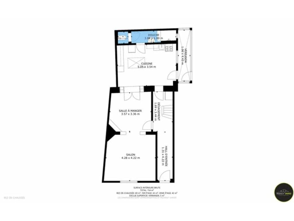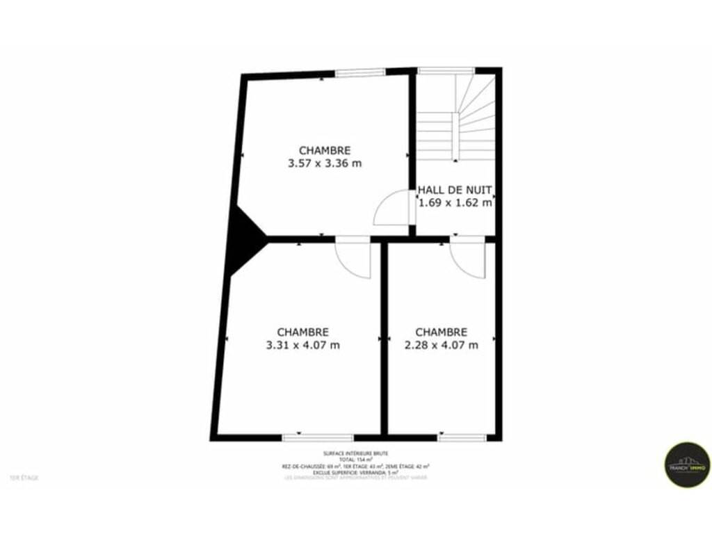 ✨ Composition : Rez-de-chaussée : hall d’entrée, salon, salle à manger, cuisine, douche, WC et véranda 1er étage : 3 chambres + hall de nuit 2e étage : 1 chambre, dressing et grenier aménageable
