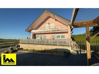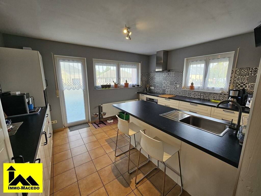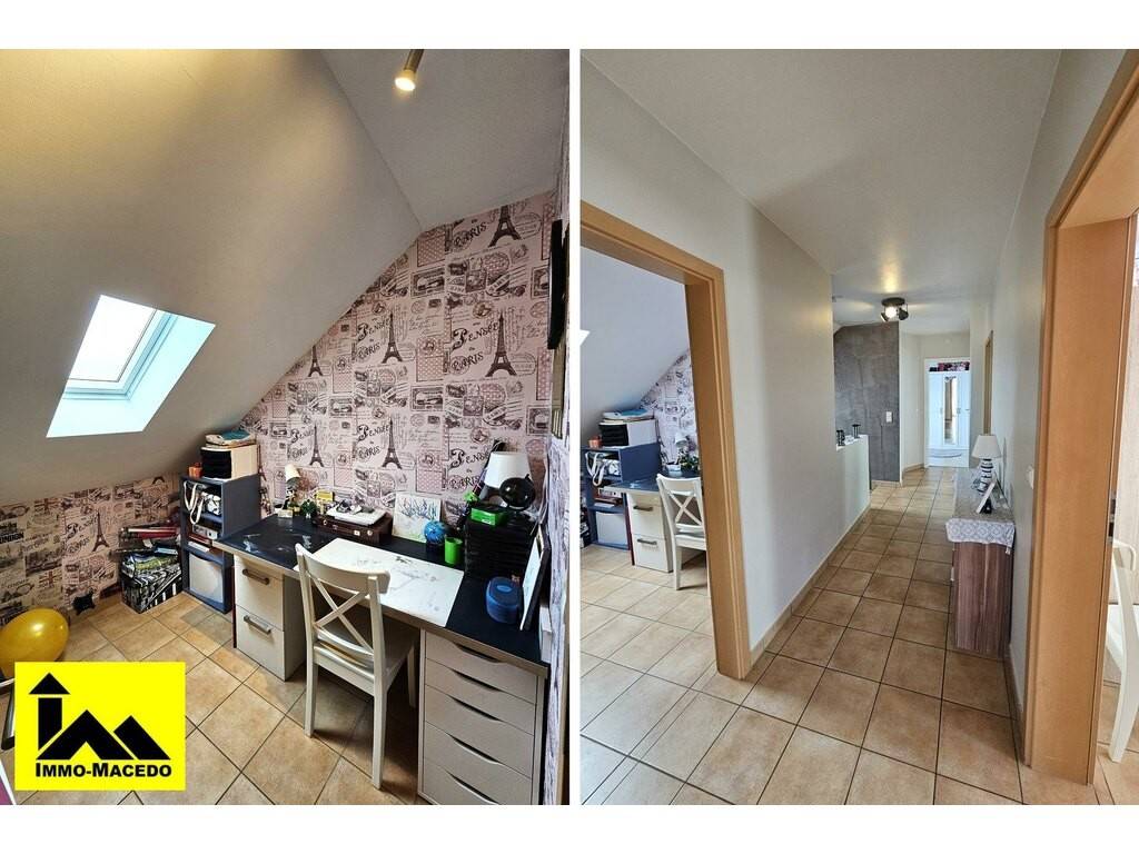 Large semi-detached house built in 2004 with +/- 150 m2 on 8.68 ares of land, comprising: Entrance hall, 5 bedrooms, study, fitted kitchen with exit to terrace, dining room / living room with fire and access to the garden, bathroom with bathtub and shower cabin, balcony, cellar, garden with shed, courtyard/parkings and car port.