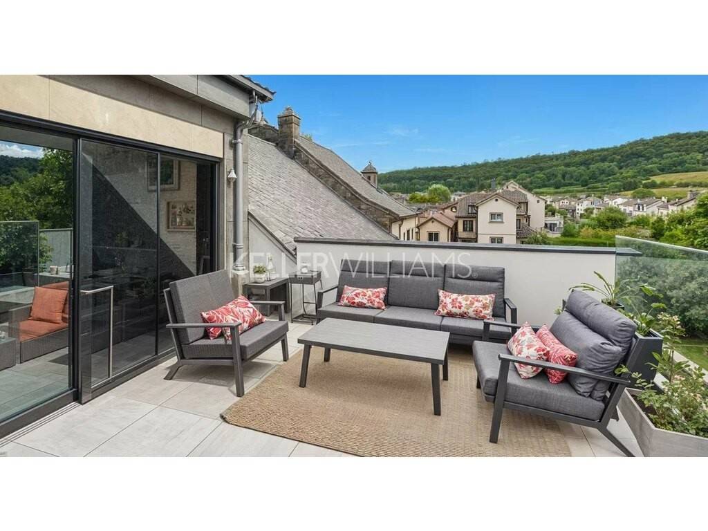 - Au 2ᵉ étage : le hall, desservant la cuisine et la pièce à vivre. Terrasse adjacente de 24,90 m² ce qui apporte énormément de charme et de lumière à la pièce. Une salle de bain. Accessible aussi par escalier et ascenseur.
