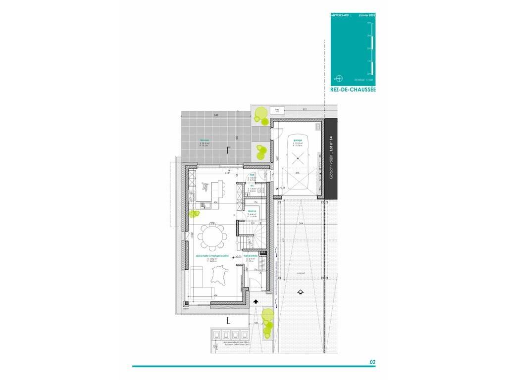 LOT 13: maison unifamiliale jumelée garage sur un terrain de 3,36 ares avec une surface habitable de +/- 165 m2 et une surface totale de +/-195 m2 comprenant: