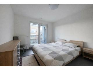 Un hall d'accueil Une cuisine ouverte équipée Un salon/salle à manger avec accès au balcon Deux chambres à coucher dont une avec accès au balcon Une salle de douche avec WC Une cave Un emplacement intérieur Un emplacement dans la buanderie commune Disponibilité à convenir.
