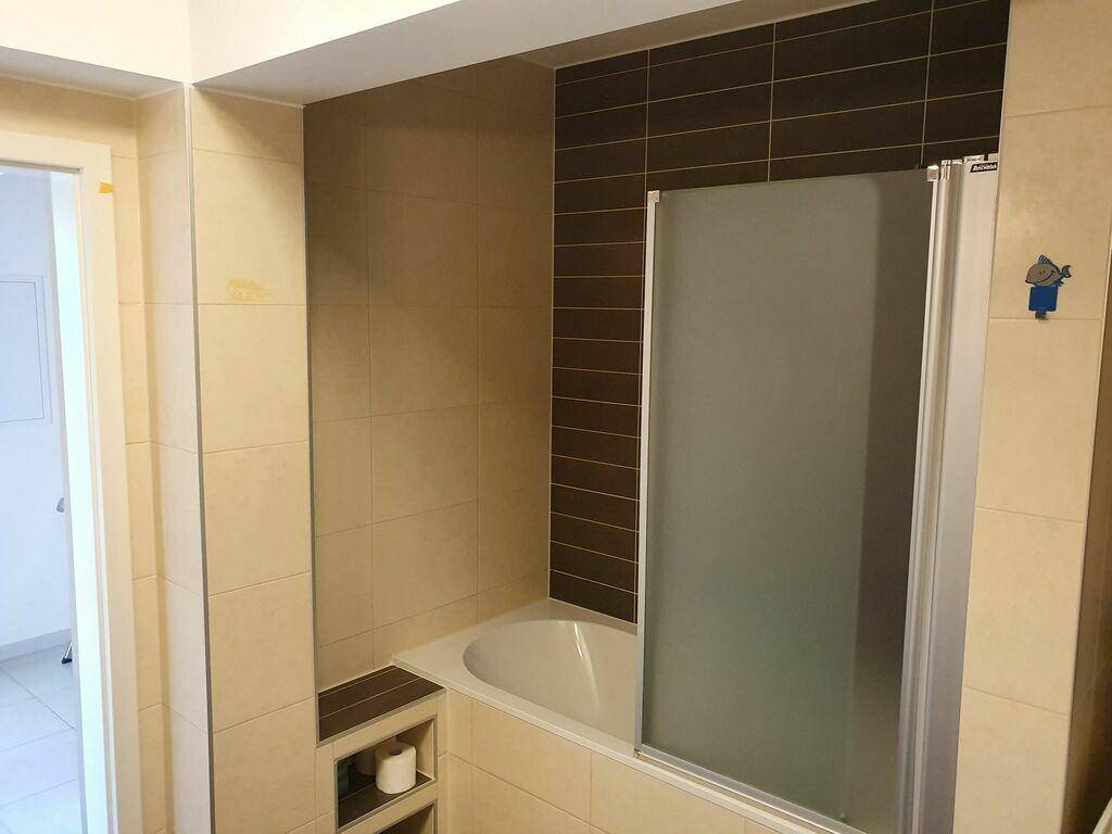 1 salle de bains avec baignoire, douche, lavabo,WC et emplacement pour lave-linge