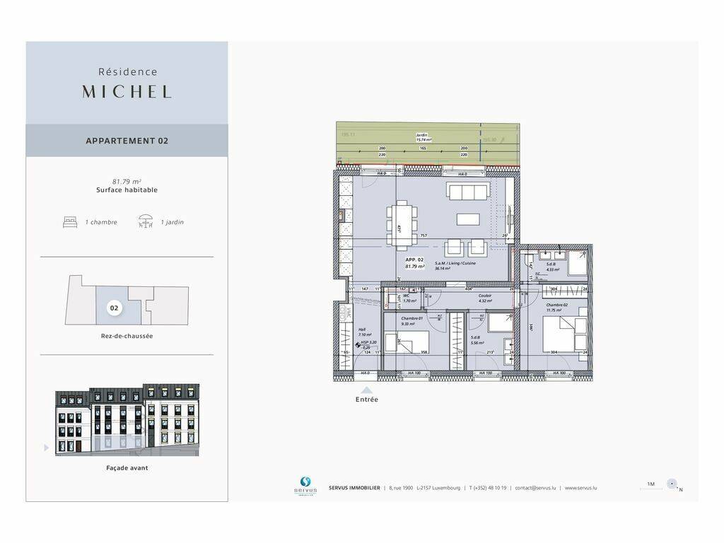 Appartement no. 02 d'une surface de ±81,98m2 qui se répartit comme suit :