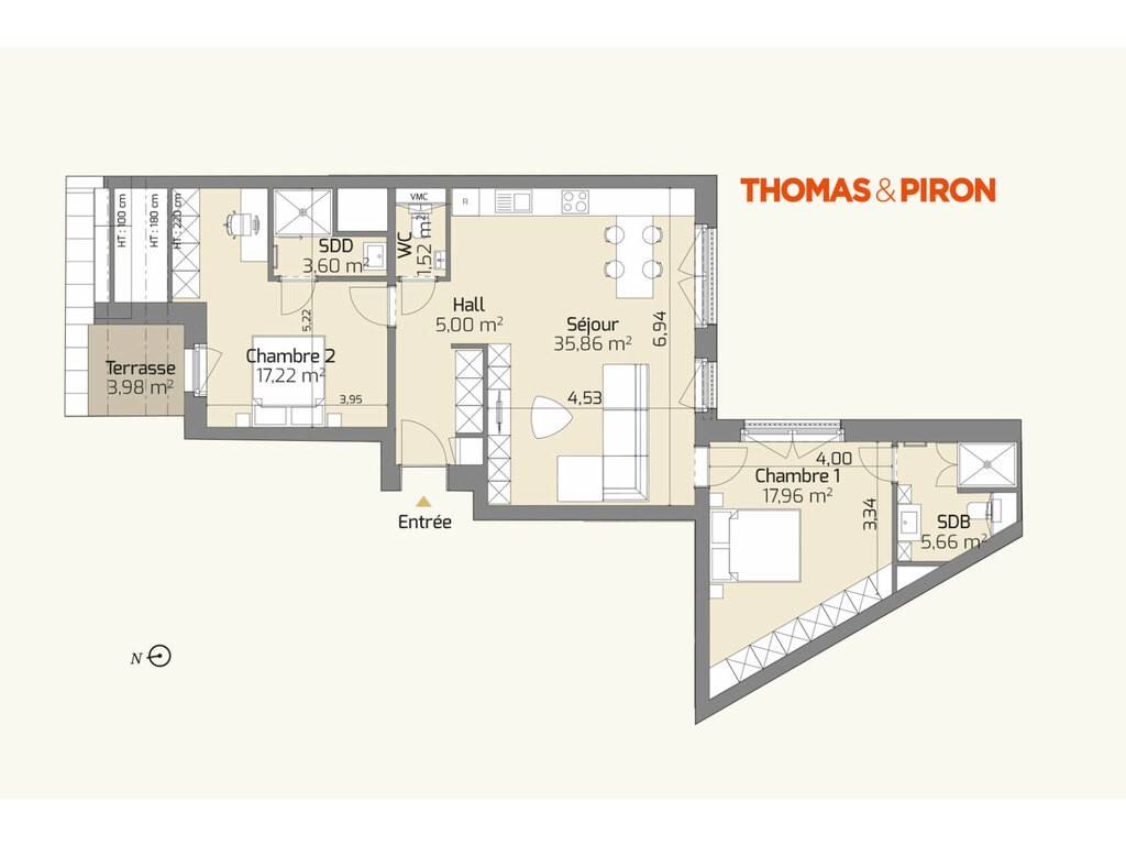 Discover this superb 91.51 m² apartment located on the 4th floor, in the immediate vicinity of the city center. This exceptional property, designed with high-end materials, offers you a comfortable and elegant living environment.