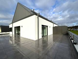 Penthouse-duplex in our new "Porte des Ardennes" residence in the rural village of Erpeldange (Ettelbruck), close to all amenities and motorways. From the bus stop opposite, you can reach the Ettelbruck train station in 5 minutes, from which you can easily reach Luxembourg City in 25-30 minutes.