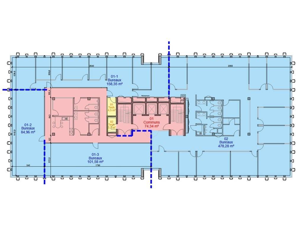 These fully renovated and wired offices offer a functional and bright environment suitable for any type of layout. The available space is expressed as net area, and the office layout can be customized to your needs for areas ranging from 80 to 185 sq m. A kitchenette, meeting room, and shared restrooms are included within this 516 sq m space. Utilities are included, except for cleaning of private areas. Internet connectivity is available for an additional 2/sq m.