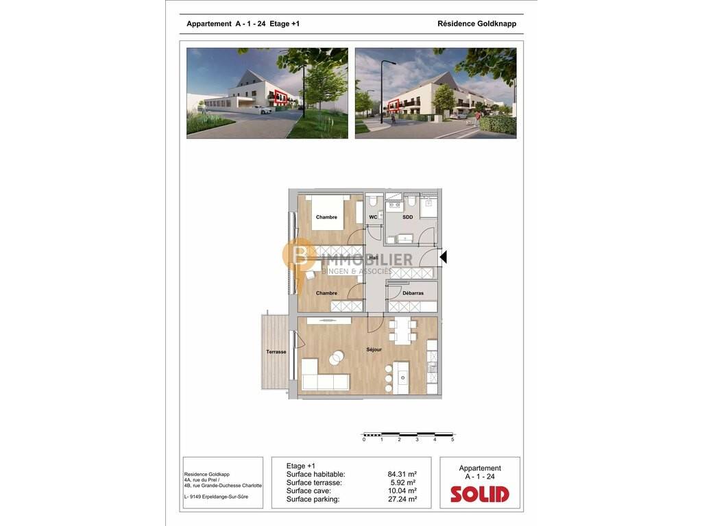 Surface habitable: 84.31 m² Surface terrasse: 5.92 m² Surface cave: 10.04 m² Surface parking: 27.24 m²