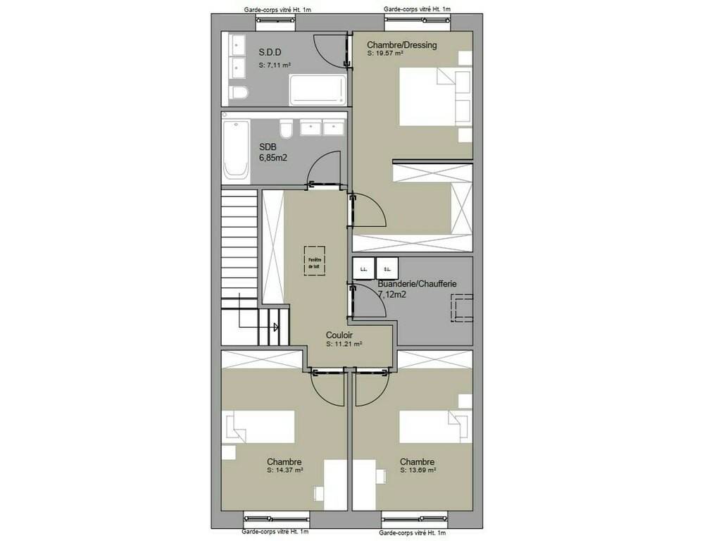 1st floor: A hall gives access to 3 large bedrooms, including a master suite with dressing room and private bathroom, a bathroom and a laundry room.