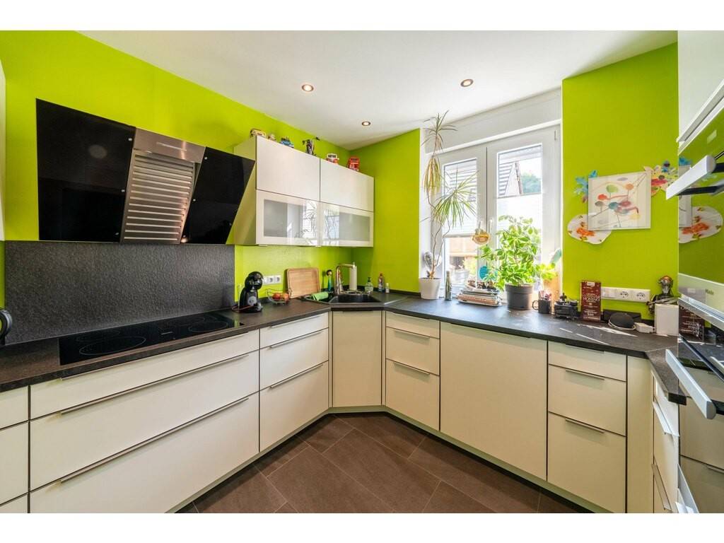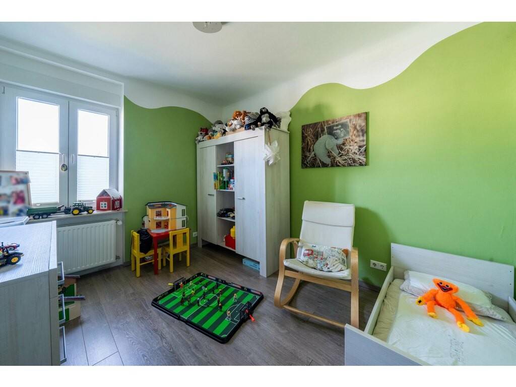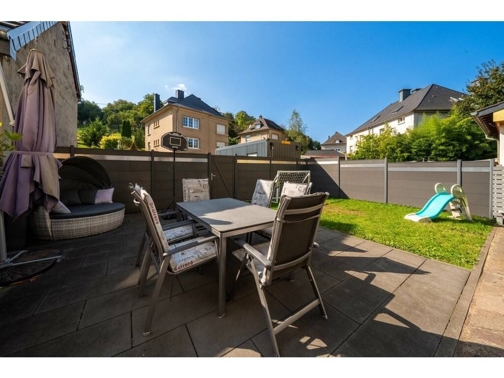 Cette charmante maison unifamiliale a été construite en 1952 et se trouve dans un endroit central et agréable à Echternach. Grâce aux travaux de réaménagement de la rue, ce quartier sera très calme à partir de l'année prochaine. Avec une surface habitable d'environ 117 m², cette maison offre suffisamment de place pour vous et votre famille. Avec trois chambres à coucher et quatre pièces au total, elle est idéale pour les besoins d'habitation modernes. Vous entrez dans la maison par l'avant-cour joliment pavée et clôturée. En été, vous pourrez y prendre un verre de vin en écoutant les bruits du ruisseau tout proche. Au rez-de-chaussée de la maison se trouve une grande cuisine intégrée blanche de très haute qualité. Le design moderne et lumineux de la cuisine vous permet d'exprimer pleinement vos talents de cuisinier. La salle de séjour avec coin repas se trouve à côté de la cuisine. Un point fort particulier de la maison est la cheminée confortable dans le couloir d'en face, qui assure une chaleur agréable les jours de fraîcheur. Un WC séparé se trouve à côté. La sortie arrière donne accès au beau jardin et à la terrasse adjacente. Derrière se trouvent trois places de parking extérieures. De retour dans la maison, vous entrez au premier étage par l'escalier en bois véritable. Au premier étage se trouvent deux chambres à coucher et une grande salle de bain fraîchement rénovée avec douche et baignoire. Plus haut, au 2ème étage, se trouve une grande chambre à coucher avec dressing et salle de bain en-suite. Au sous-sol se trouvent une grande buanderie, une chaufferie et un couloir qui peut être utilisé comme espace de rangement supplémentaire.