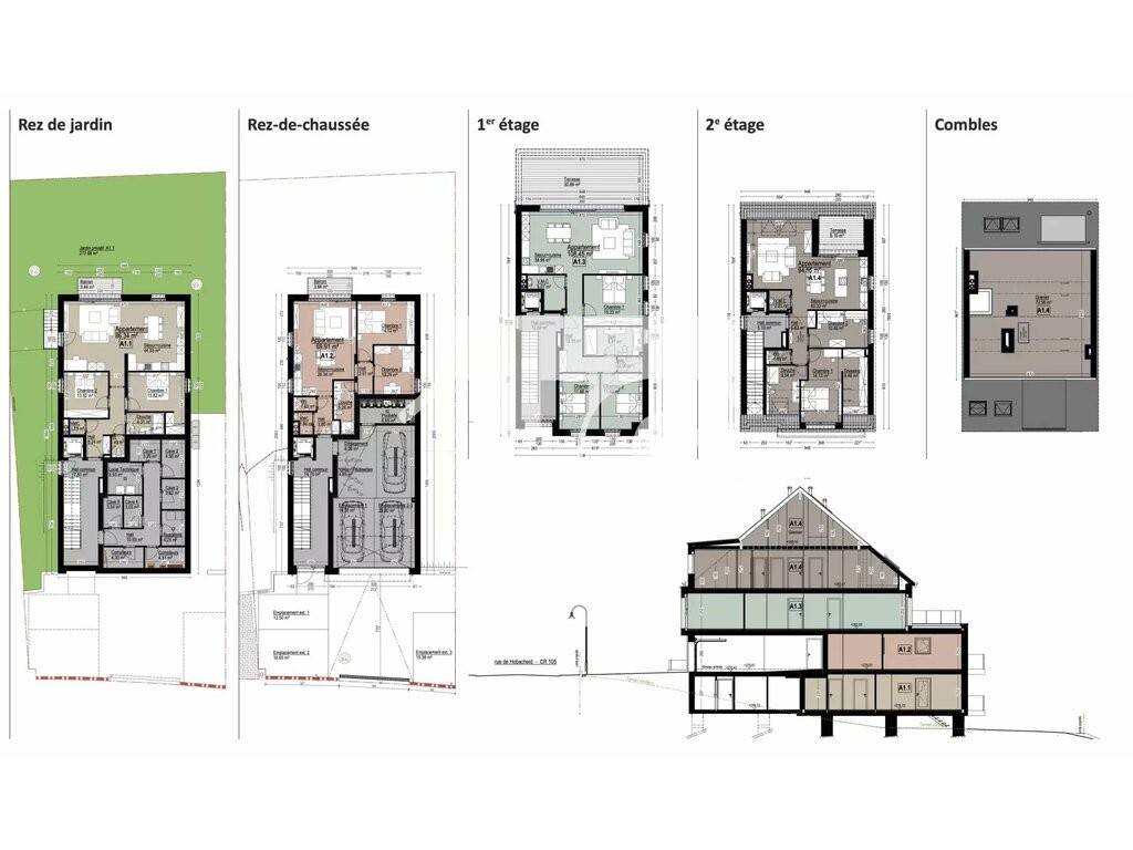 Zukünftiger Bau von 4 Wohnungen mit 2-3 Schlafzimmern, 72-124 m², ab 590.000 €. Keller und Stellplätze im Preis inbegriffen.