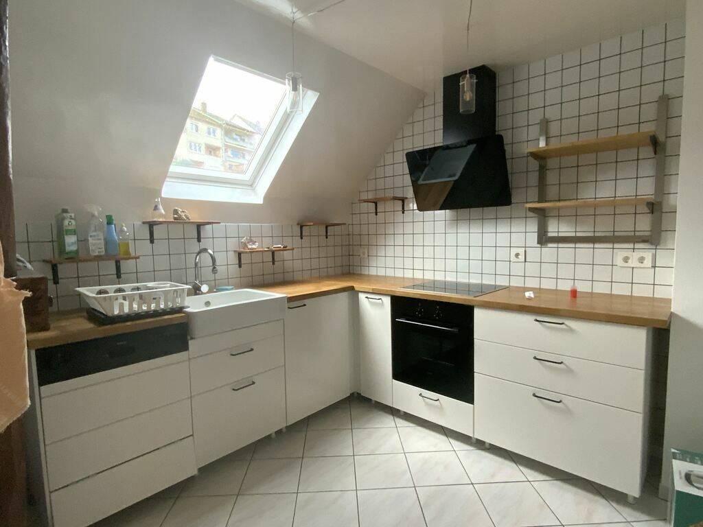 Cuisine équipée 1 salle de douche avec douche avec raccord pour machine à laver 2 chambres à coucher 1 séjour 1 grand grenier