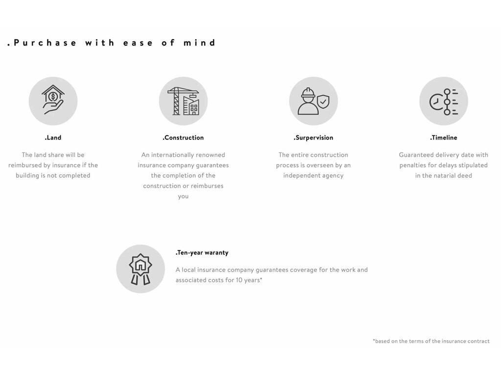 A ten-year construction guarantee (garantie décennale), backed by insurance, ensuring long-term security.