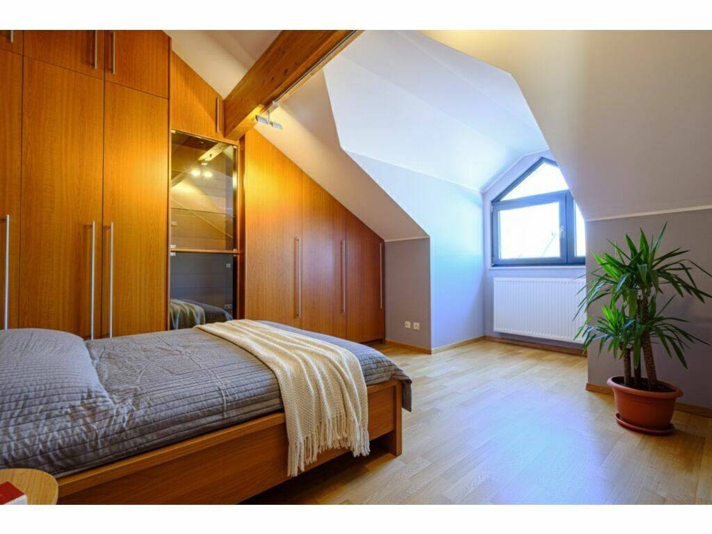 - Chambre à coucher avec des armoires encastrées.