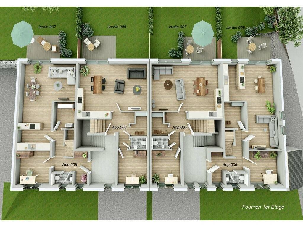 The real estate agency HOME INVEST offers you exclusively a pleasant duplex apartment (Lots 006+010) with a living area of 142.00 sqm with terrace and private garden, located on the first and second floor in a residential construction project in Fouhren, and composed as follows: