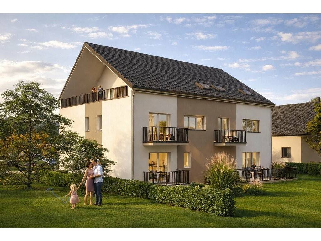 The real estate agency IMMOBILIERE MARECHAL offers you exclusively a light-filled apartment (Lot 016) with a living area of 89.31 sqm and balcony, located on the first floor of the Residence “HARLES” in Bissen, and composed as follows: Upon entering the apartment, you have direct access to a hall (11.49 sqm), which leads to: - a separate toilet of 2.77 sqm - a bright living room/kitchen area of 33.26 sqm, and access through two French doors to a balcony of 3.29 sqm which is completed by a storage room of 4.91 sqm - a bathroom with a window (6.18 sqm), including a shower, a sink, and a wall-mounted toilet - a first bedroom of 13.23 sqm - a second bedroom of 14.53 sqm. On the ground floor, you benefit from: - a shared laundry and bicycle storage room. In the basement, you benefit from: - one indoor parking space (lot 003) - a private cellar (lot 009) - a technical room, a shared garbage and boiler room. The displayed price is excluding VAT on the construction portion to be completed. The land portion is VAT exempt. The price including 3% VAT amounts to EUR 785.502 (subject to acceptance by the Land Registration and Estates Department and in accordance with the provisions of the Grand Ducal Regulation of July 30, 2002. The agency fees are payable by the seller(s). 10 YEAR STRUCTURAL WARRANTY. Sale Details - Agency fees at the expense: Not communicated - Thermal protection class: B
