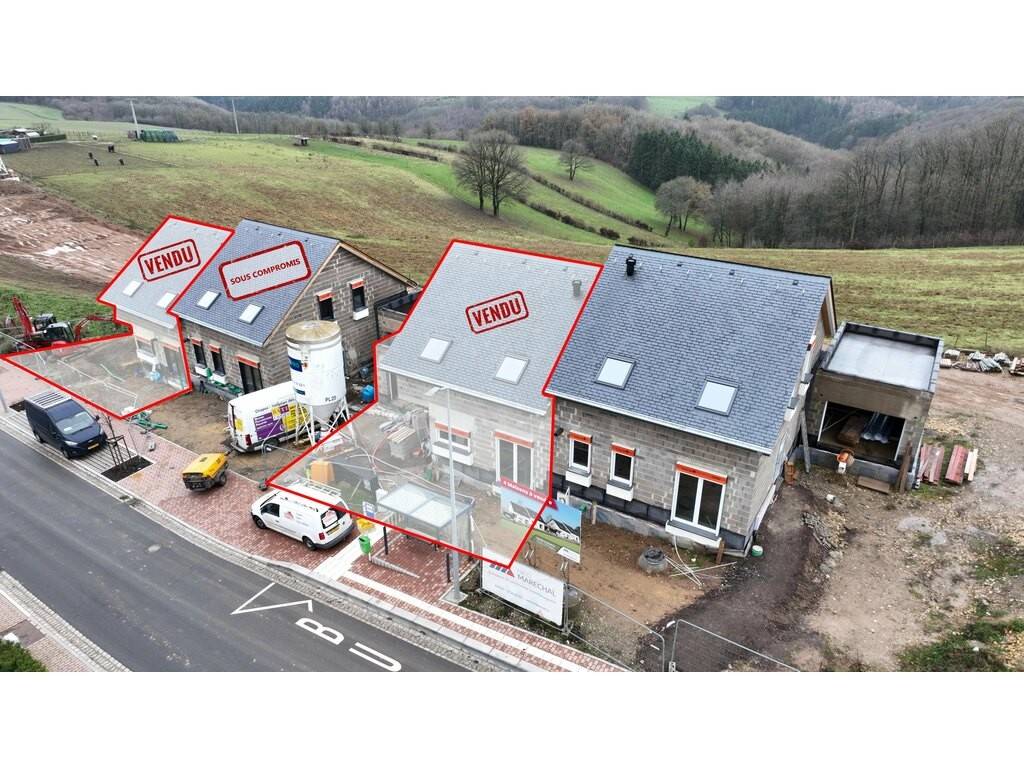 its construction project in Merscheid, Haaptstrooss, municipality of Esch-sur-Sûre. This development consists of two adjacent blocks comprising a total of four semi-detached houses (energy performance classes AA and AB), designed with a clean, contemporary architectural style and featuring high-end materials of the highest quality.