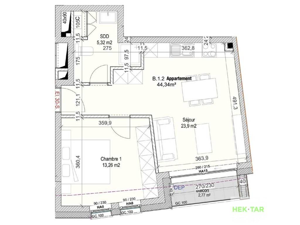 HEKTAR offers you this magnificent apartment (lot B 1.2) with a living area of 44.34 m², ideally located in the heart of the village of Oetrange, just 300 m on foot from the Oetrange train station.