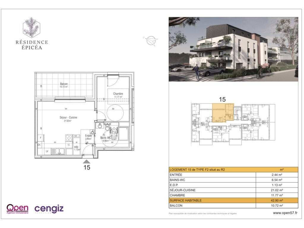 Découvrez le Lot 15 de la Résidence ÉPICEA à Aumetz, un appartement de type F2 d’une surface habitable de 42,9 m², situé au 2ème étage avec ascenseur. Cet appartement est doté d’un extérieur de 10,72 m² et est proposé au prix de 150 000 €.