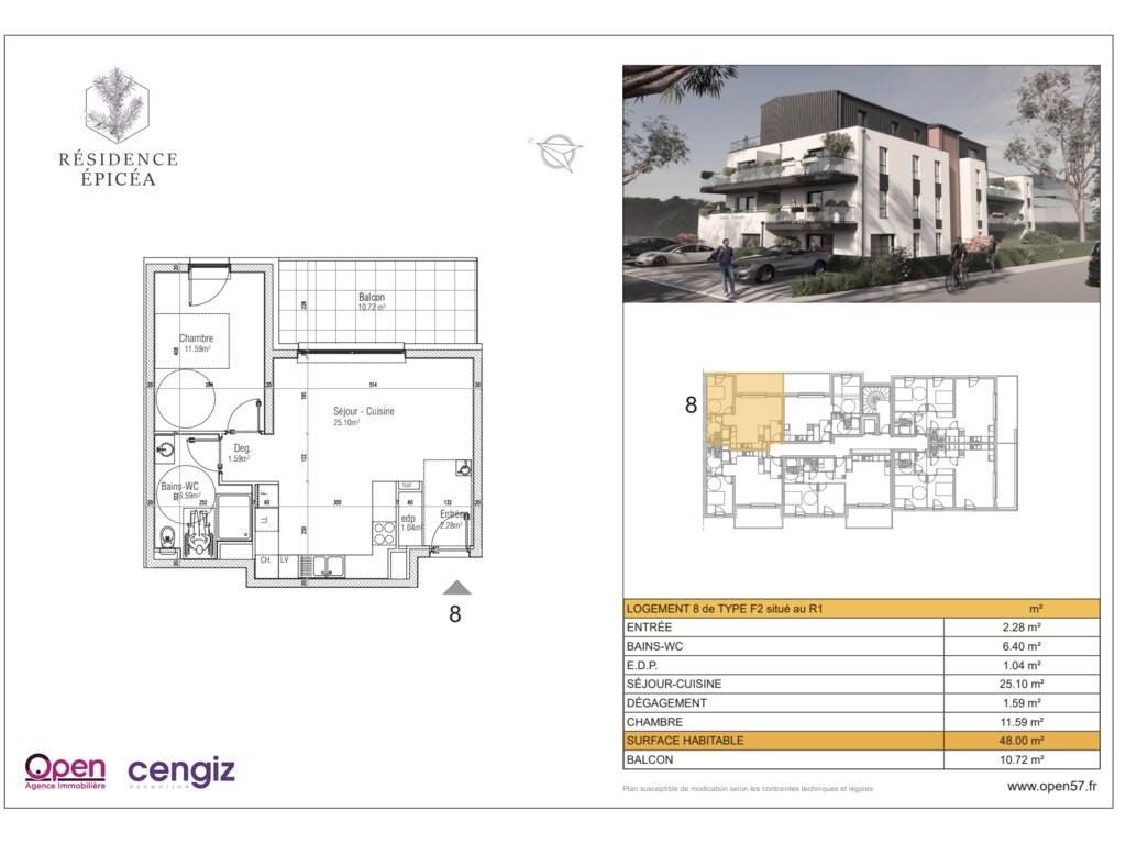 Découvrez le Lot 8 de la Résidence ÉPICEA à Aumetz, un appartement de type F2 d'une superficie de 48 m², situé au 1er étage avec ascenseur. Cet appartement dispose d'un extérieur de 10,7 m² et est proposé au prix de 165 000 €.