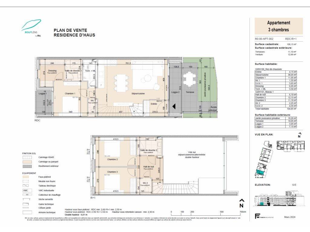 Au sein de la résidence D'Haus, IKO REAL ESTATE vous propose cet appartement 3 chambres neuf de 104,85 m² situé au rez-de-chaussée, comprenant un séjour/cuisine, deux salles de douche, deux wc séparés, une terrasse/jardin de 23,98 m² et une cave privative.