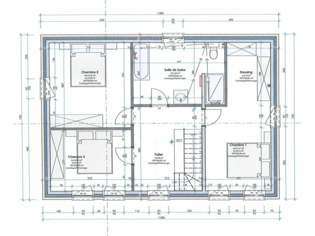 Étage : un hall de nuit, une suite parentale avec dressing (±17 m²), deux belles chambres (±14 m² et ±10,5 m²) et une salle de bains confortable de ±11,5 m².