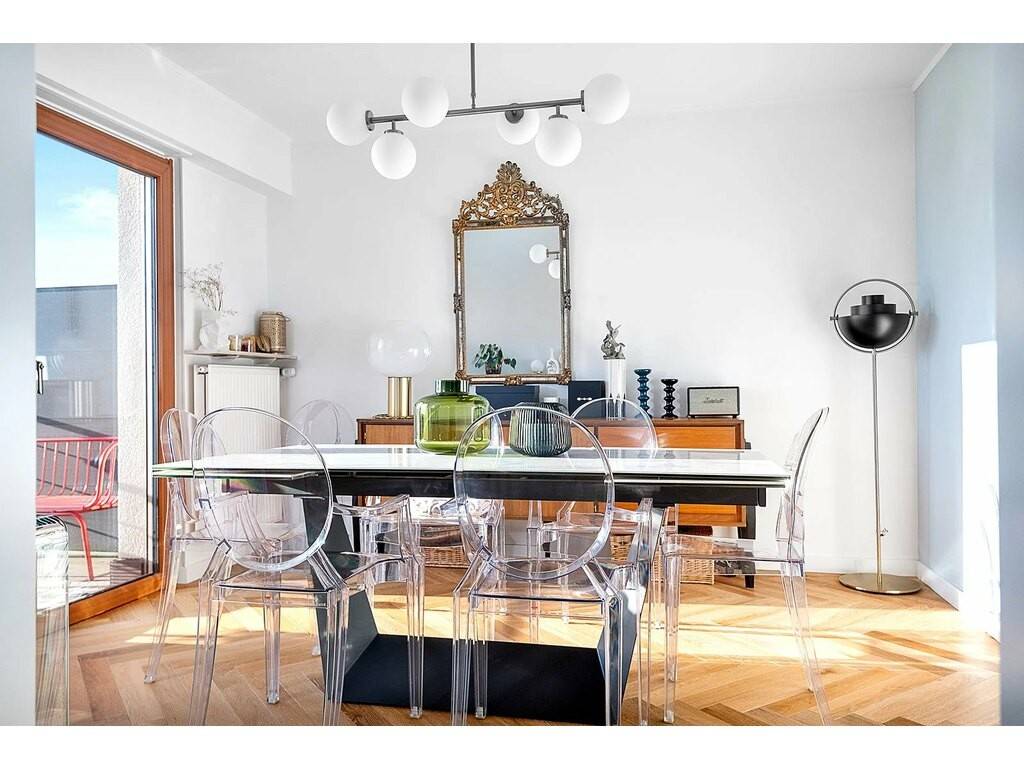 Both the kitchen and living room have French windows opening onto the balcony and terrace, facing south-east and north-west.