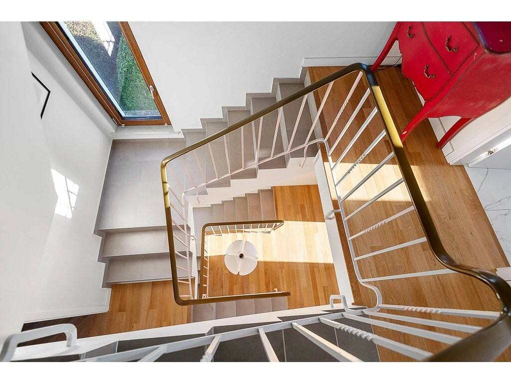 On the first floor, the entrance door opens onto a spacious 12 m² entrance hall with a 2 m² checkroom and toilet, separated from the living area comprising a bright 30 m² double living room, a 14 m² dining room and a modern, streamlined 10 m² separate kitchen.