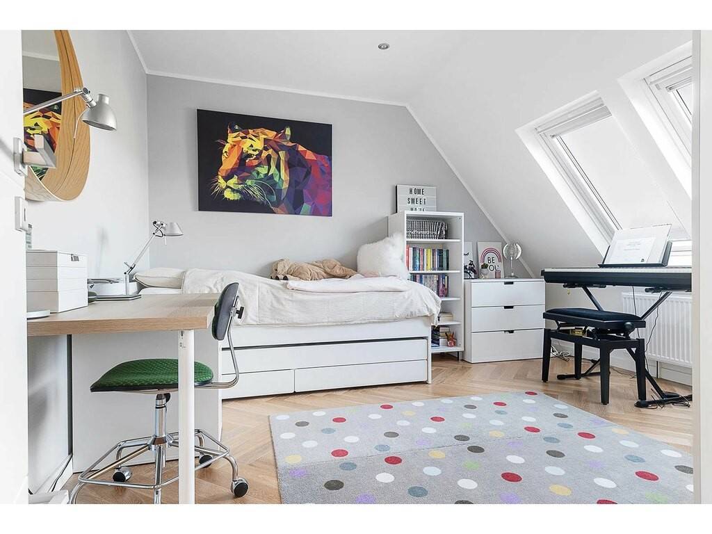 An open staircase with high ceilings (4 m) leads to the night floors.