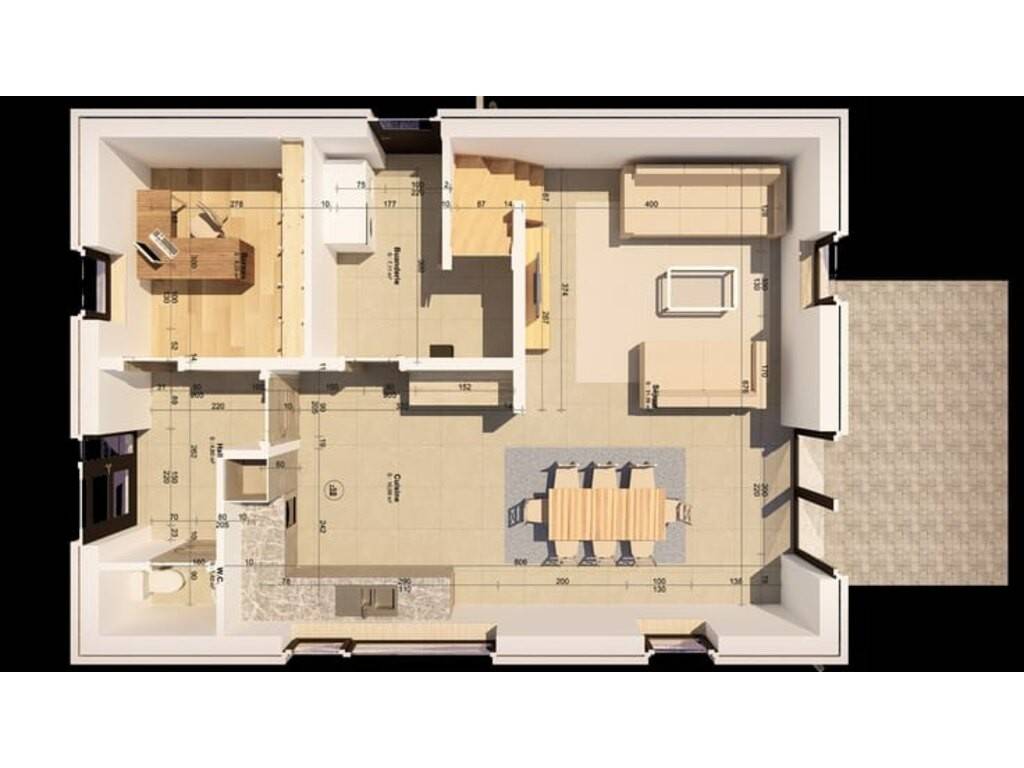 Elle se compose au rez-de-chaussée d’un hall d’entrée, d’un WC séparé, d’un lumineux et spacieux séjour avec espace cuisine ouvert, d’un bureau/chambre et d’une buanderie.