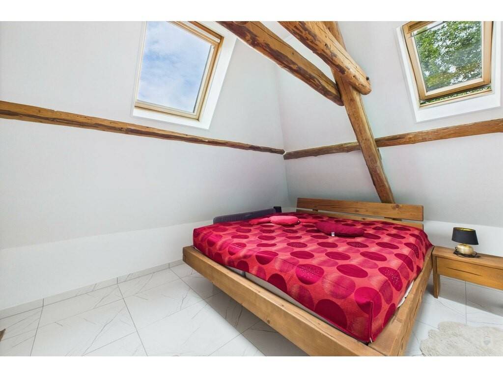 Construite en 1970, cette maison de caractère a su conserver son charme d'origine tout en étant entièrement modernisée pour répondre aux standards de confort actuels. Le salon chaleureux avec un poêle à feu vous promet des soirées conviviales et confortables. La cuisine équipée, lumineuse et accueillante, ravira les amateurs de gastronomie et les moments en famille.