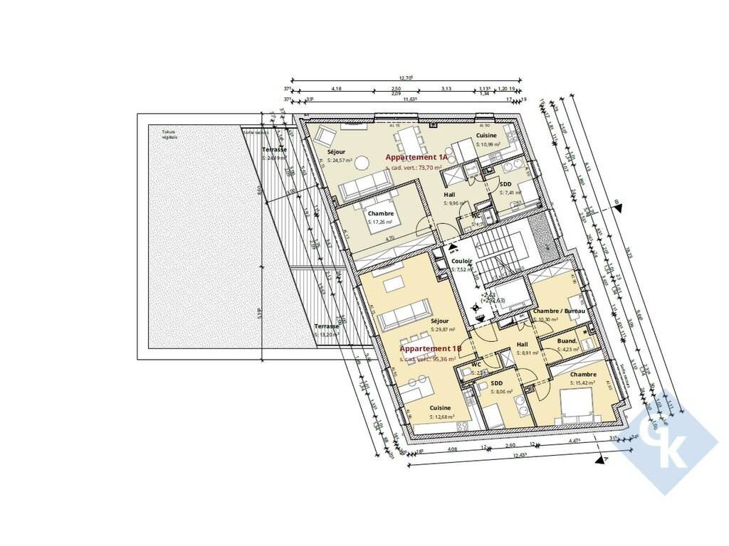 Les superficies varient de 51 m² à 128 m², tous les logements bénéficiant d'un balcon ou d'une terrasse ainsi que d'une cave privative.