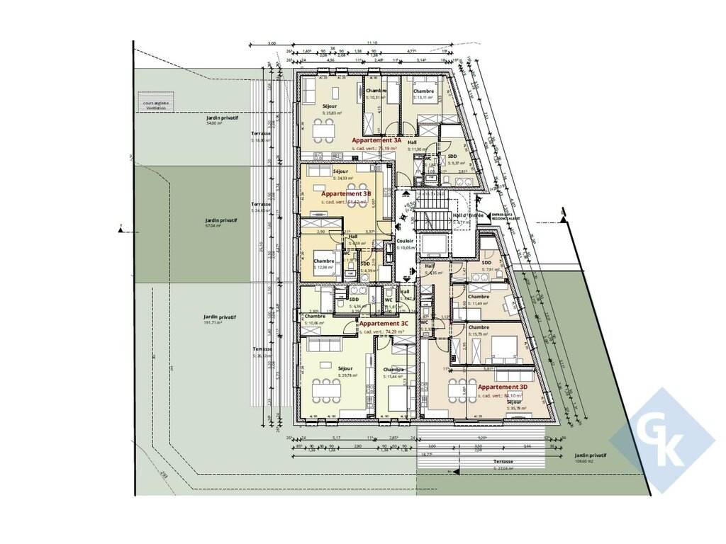 Les superficies varient de 51 m² à 128 m², tous les logements bénéficiant d'un balcon ou d'une terrasse ainsi que d'une cave privative.