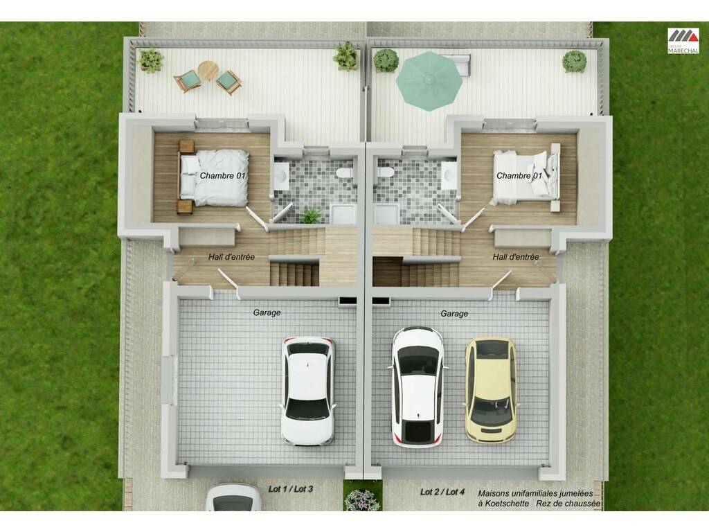The real estate agency IMMOBILIERE MARECHAL offers you exclusively a modern contemporary house (lot 3), semi-detached on its right side, with a living area of +/- 150 sqm (total area: +/- 271 sqm), located on a plot of 7 a 71 ca, and spread over 3 levels, as follows: