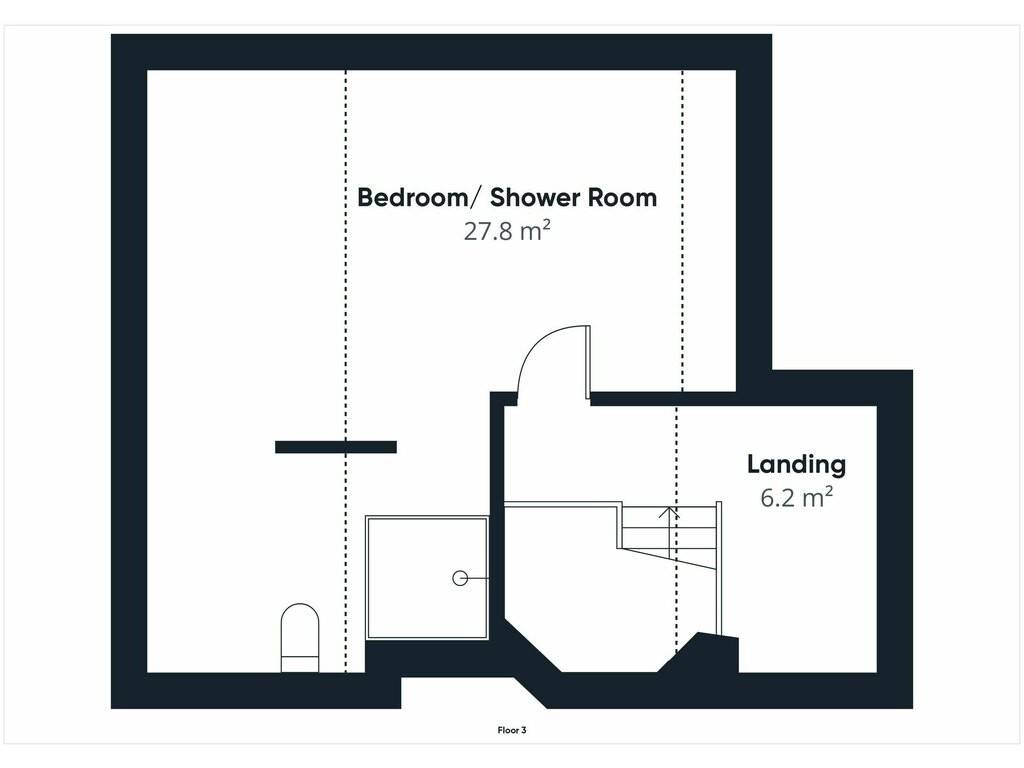 3rd floor: hall (6.2 sqm floor surface) - bedroom/office or play area (27.8 sqm floor surface) with en suite shower room
