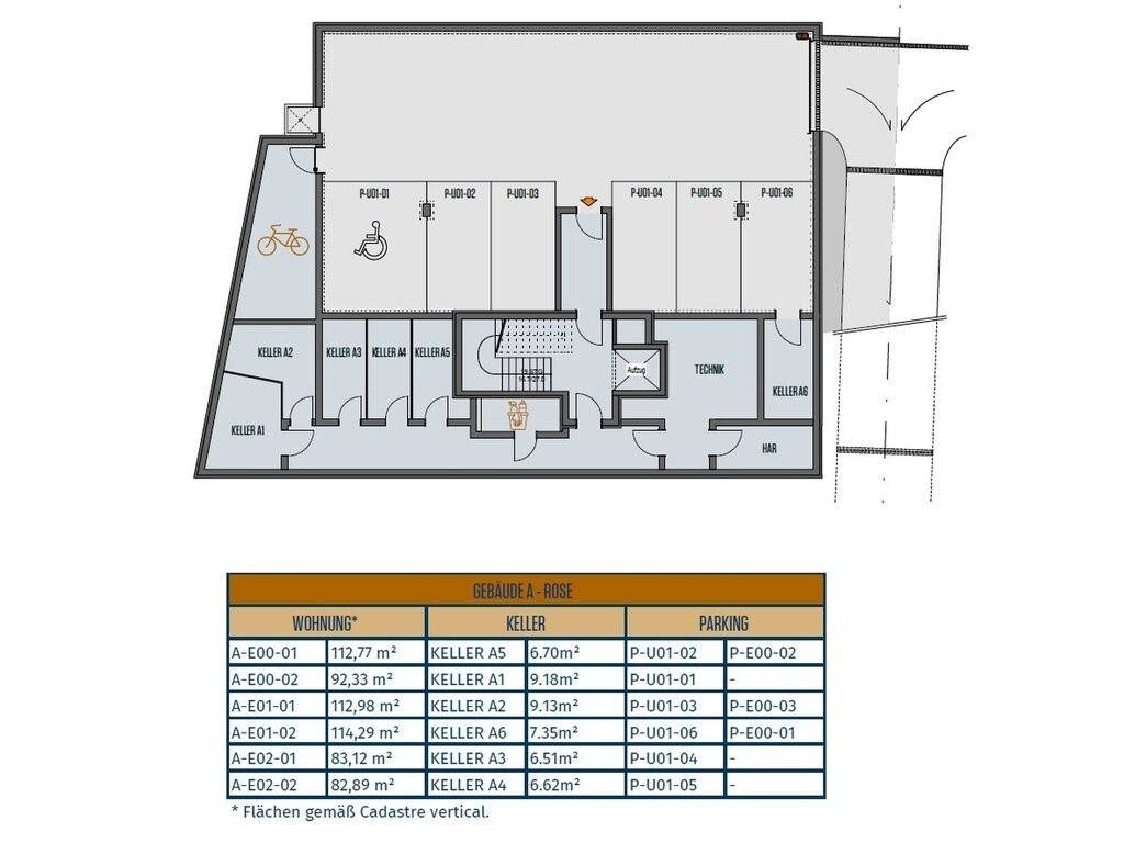 You will also have a private cellar of 9.13 m², a private space for your washing machine/dryer in the communal laundry area, and, at an additional cost, indoor and outdoor parking spaces.