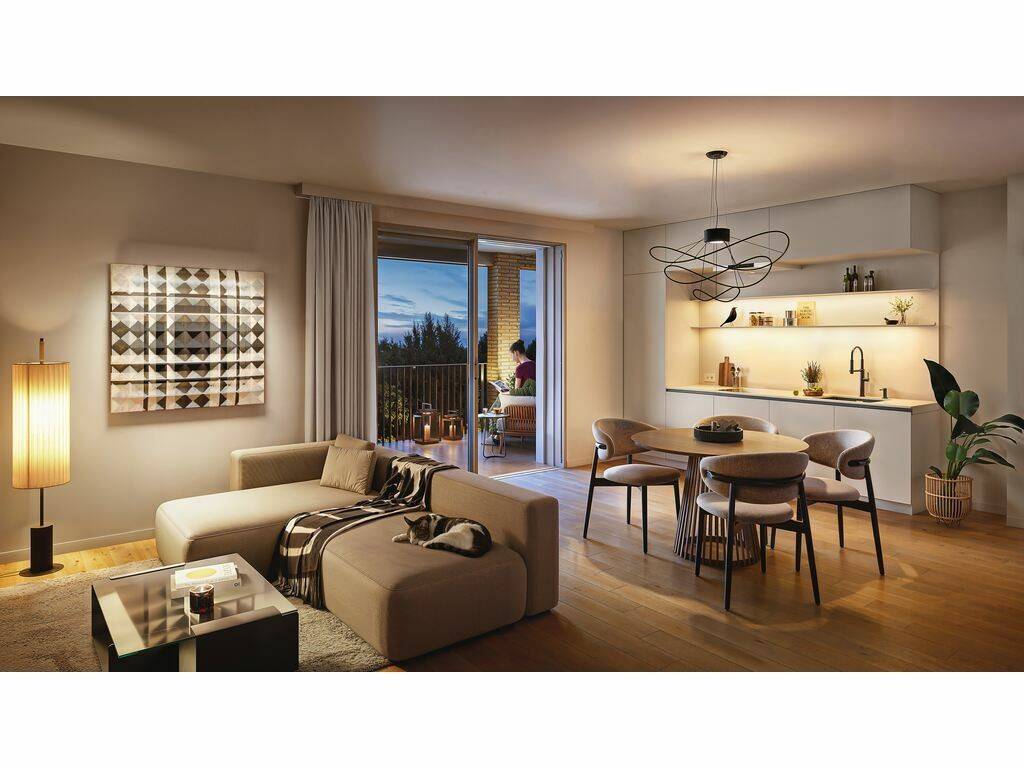 Conçue par le cabinet CBA Architects, Calluna séduit par son style raffiné : une façade en briques beige clair, des enduits minéraux naturels, des loggias aux garde-corps en verre ou en bronze. Chaque détail reflète une esthétique soignée.