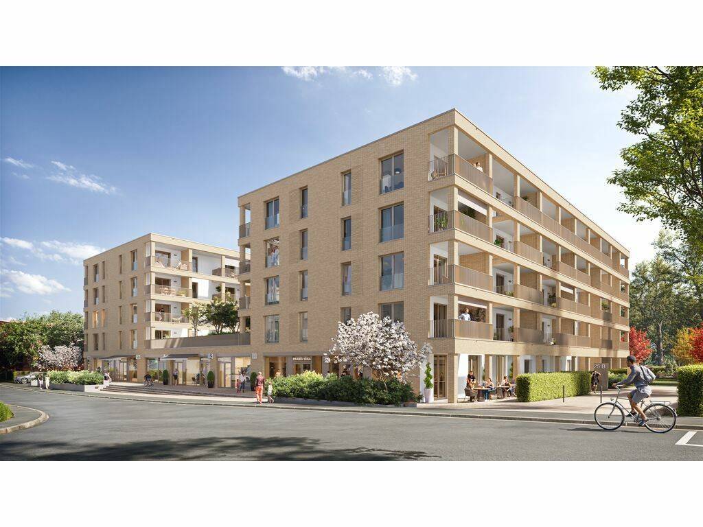 Composée de 61 appartements de 1 à 3 chambres, répartis sur cinq niveaux dans deux ailes harmonieuses, la résidence s’élève au-dessus de commerces et bureaux qui animent le rez-de-chaussée.