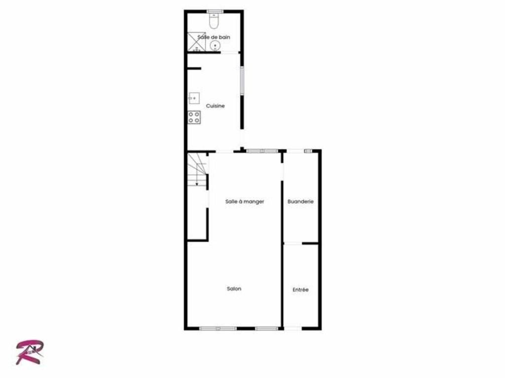 Au rez-de-chaussée : un hall, un salon, une cuisine donnant accès à la terrasse, une salle de douche avec wc;