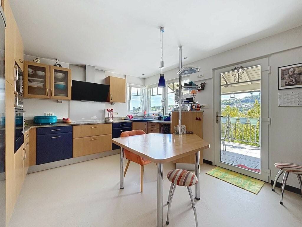 L’espace de vie principal, situé au rez-de-terrasse, séduit par sa luminosité et son atmosphère chaleureuse. On y découvre un salon de 27 m² agrémenté d’un poêle à bois, une cuisine entièrement équipée de 12 m², une salle à manger conviviale de 23 m² ainsi qu’une véranda baignée de lumière de 17 m², elle aussi dotée d’un poêle à bois. L’ensemble s’ouvre sur une superbe terrasse d’environ 100 m², parfaite pour profiter des beaux jours et admirer la vue. Un espace de rangement complète cet étage.