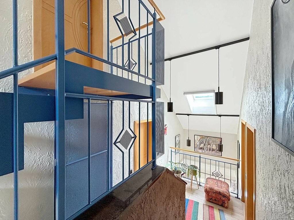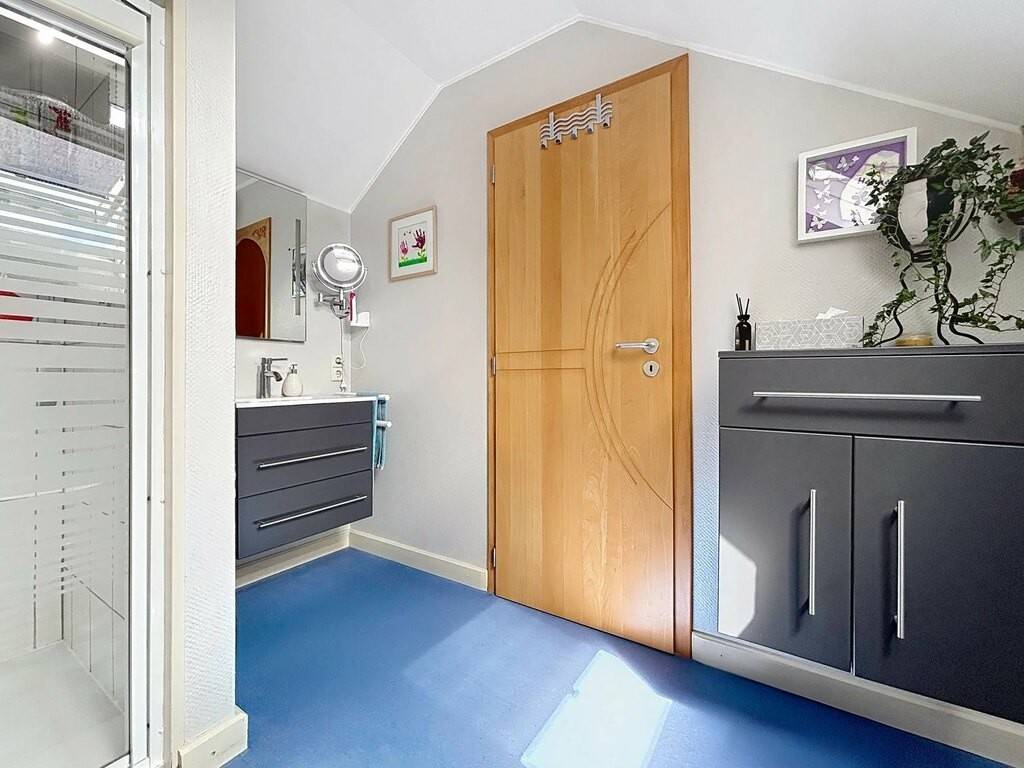 À l’étage, une salle de bain de 9 m², une salle de douche de 6 m², une chambre de 10 m² et une chambre avec mezzanine de 20 m² offrent de belles possibilités d’aménagement.