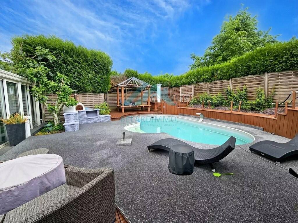 Le jardin accueille une piscine , parfaits pour se détendre, avec grande terrasse en teck. La maison est également équipée de la fibre optique et d’un vidéophone pour votre tranquillité. Cette propriété est un véritable havre de paix, alliant technologie moderne et confort haut de gamme. Ne manquez pas l'occasion de visiter ce bien unique.