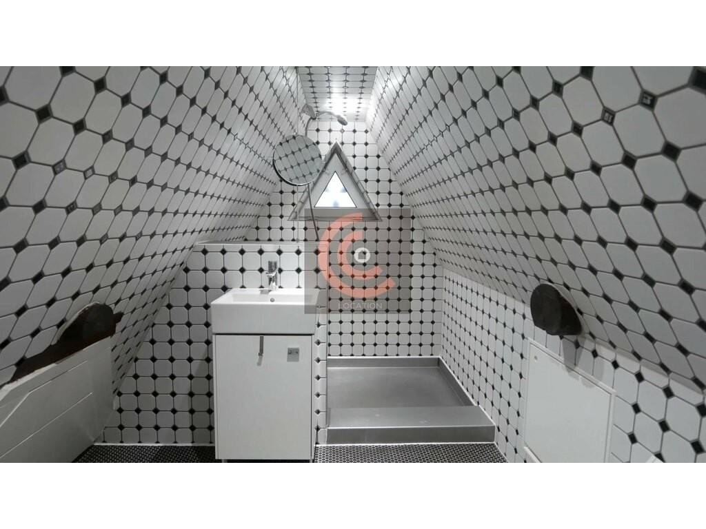 On the first level is the living area with an open fully equipped kitchen, dining space and lounge. On the upper floor, a large bedroom features a foldaway bed integrated into a storage unit, a large wardrobe and separate toilet. Finally, on the top floor, the shower room has been arranged under the roof, giving the place an unexpected and extraordinary charm.