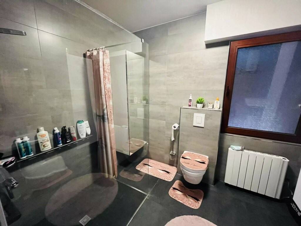 L'appartement se compose également de trois chambres à coucher, donc une avec sortie terrasse, d'une salle de douche avec wc , offrant une distribution harmonieuse des espaces, d'une buanderie, place de parking commun, et une cave privée pour optimiser l'espace rangement.