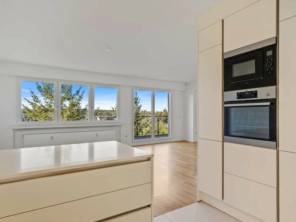 With a living surface of ±161m² (cadastrale area 195m²), the apartment impresses with its exceptional brightness, refined finishes, and breathtaking views over the Bambesch forest and the surroundings.