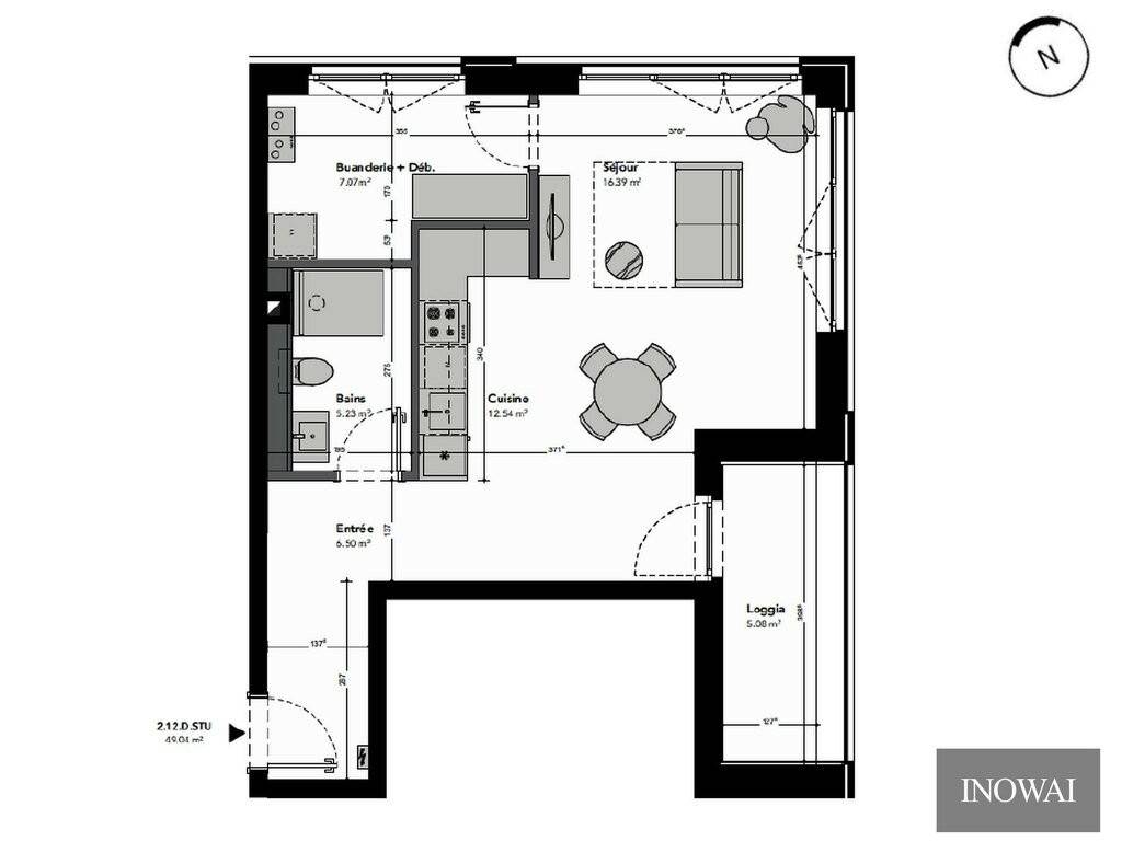 As you enter, you discover a vast open space that combines the living room and kitchen, creating a bright, friendly atmosphere.