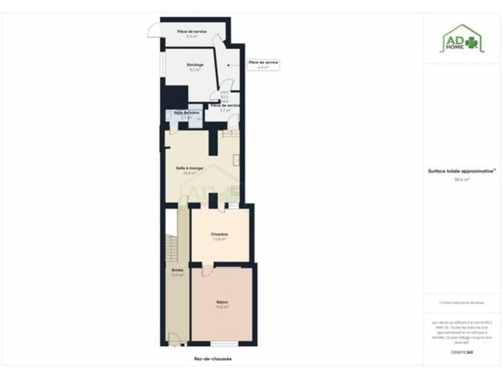 Au rez-de-chaussée, un vaste hall commun dessert les différents studios. Le premier studio comprend une salle à manger avec cuisine ouverte, un salon, un espace chaufferie, une salle de bain et une chambre.